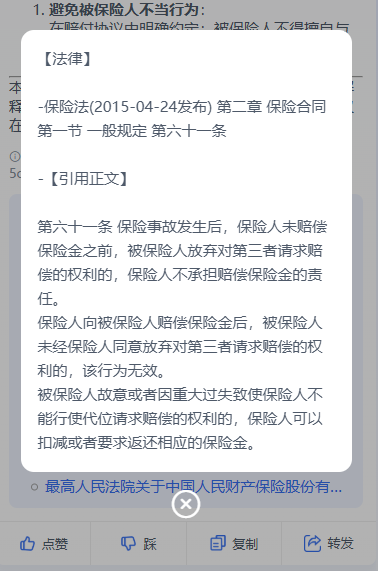 对于法律、政务类回答,我们提供 “依据”展开功能。点击即可清晰查看答案所引用的具体法律法规名称、条款序号、相关政策文号乃至相关案例索引。这不仅给出结论,更提供了验证结论的路径,构建坚实可信的服务体验。